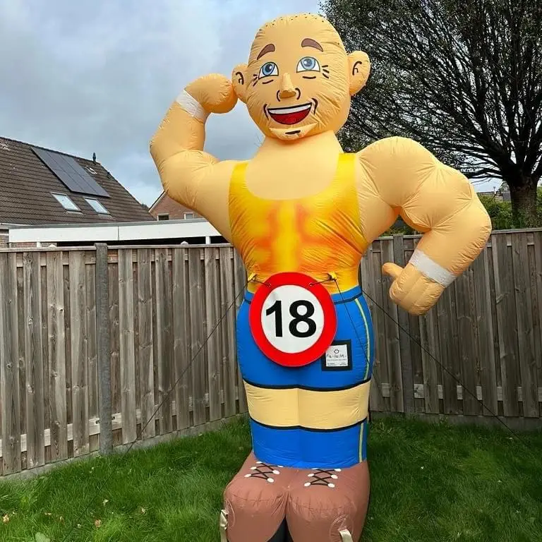 Al onze poppen worden standaard geleverd met een blower, opzetinstructie, haringen en een banner naar keuze.